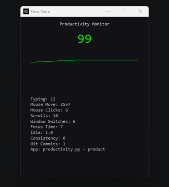 - Combines everything into a live productivity score (0–100)